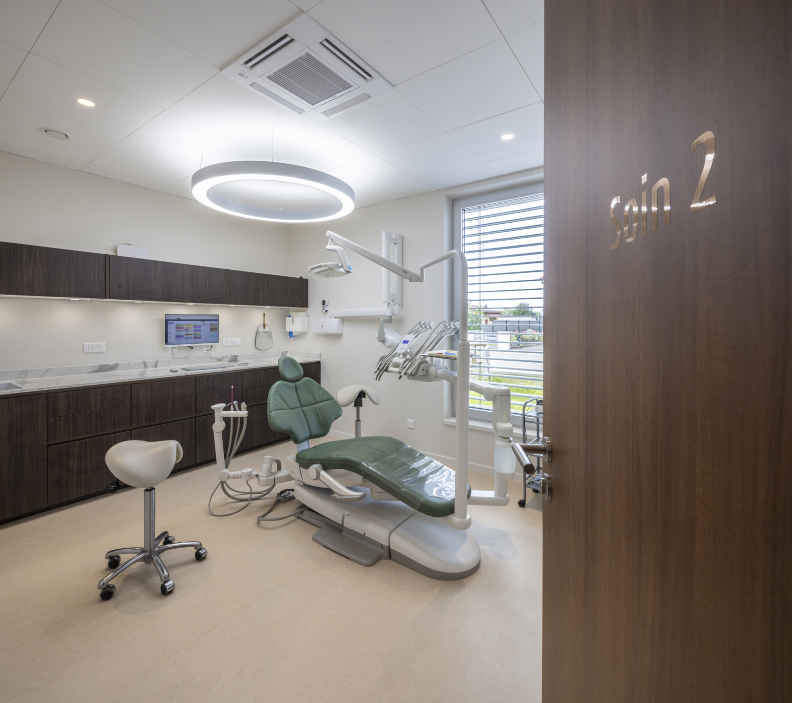 - Le cheminement des réseaux pour le branchement du matériel dentaire.